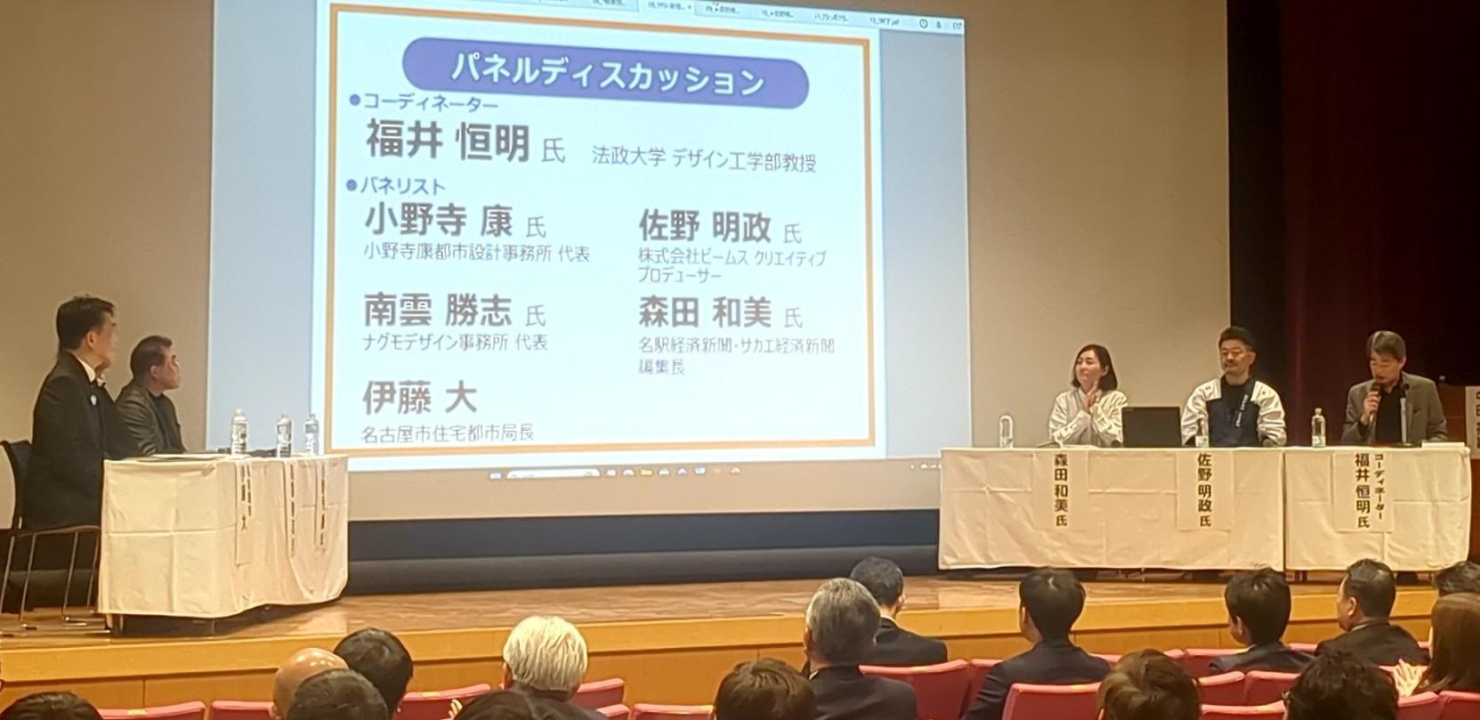 その後のパネルディスカッションでは、「名古屋の新しい顔となるための空間デザインのありかた」をテーマに、都市設計、デザイン、メディアの各分野で活躍する専門家が登壇。
