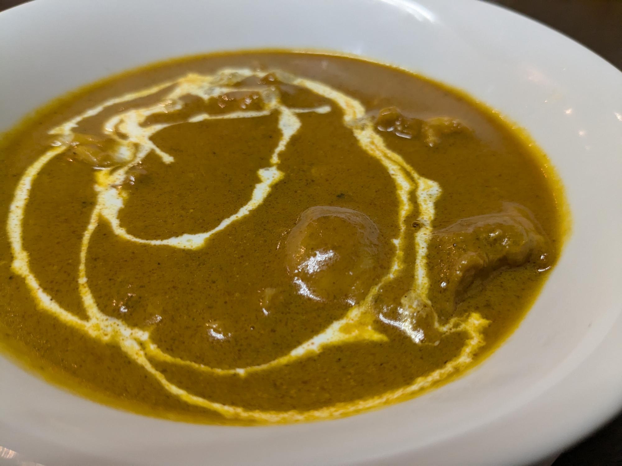 チキンカレーにナンをつけて食べると、カレーの旨みとナンのモチモチした食感が合わさり、絶妙な味わいでした。
