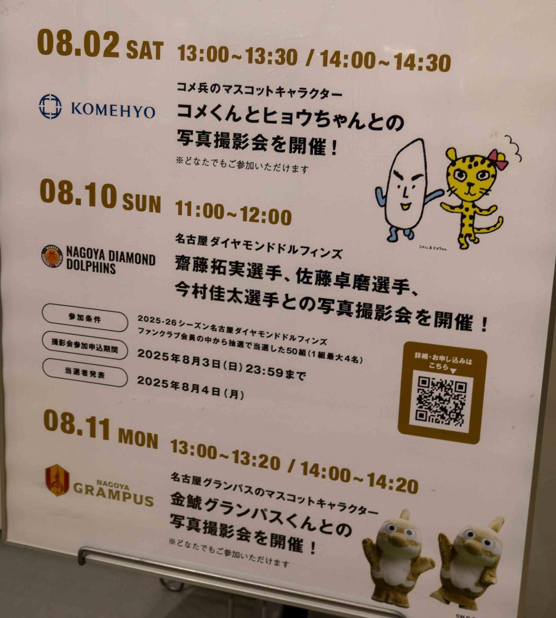 8月10日(日)11時~12時:名古屋ダイヤモンドドルフィンズの齋藤拓実選手・佐藤卓磨選手・今村佳太選手が来場(※撮影会参加には条件があります。詳細はこちら)