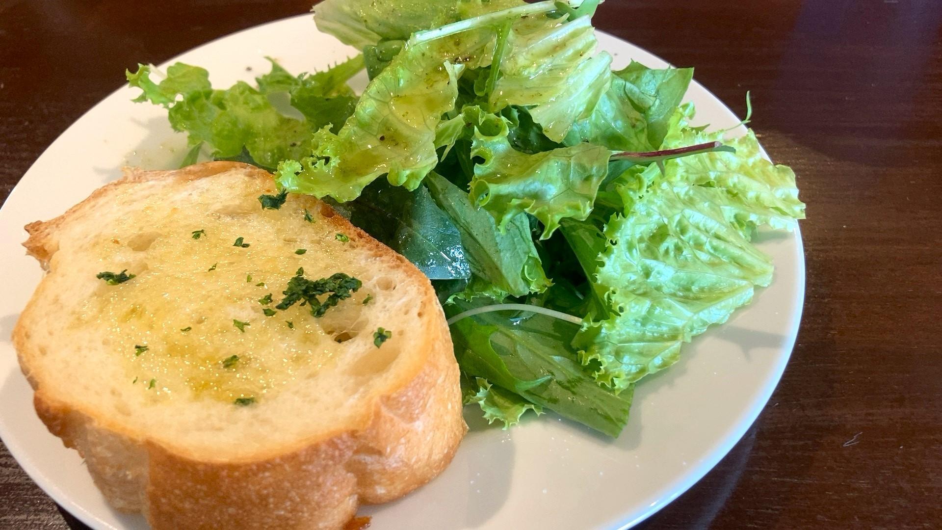 まずはサラダとパンが運ばれてきました。