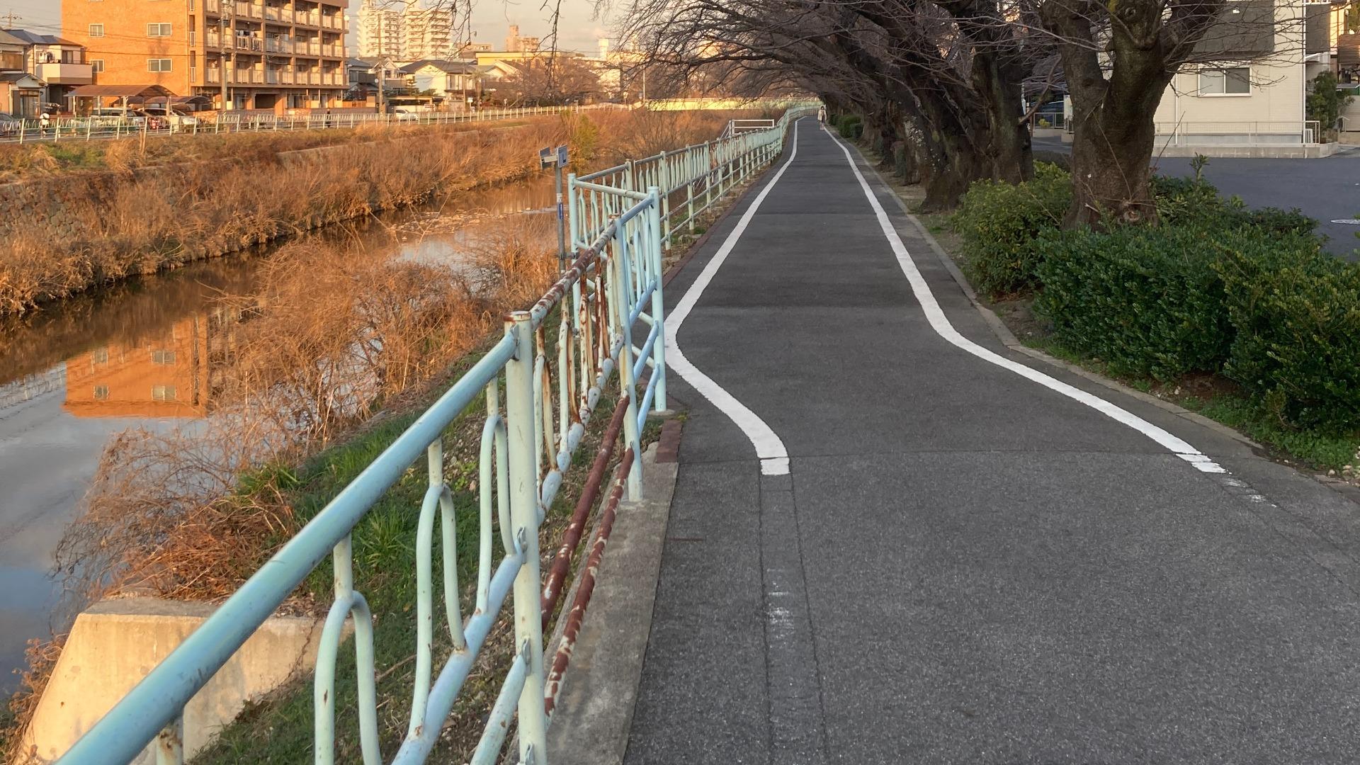 この川沿いには、歩いたり走ったりするのにぴったりな道が整備されていて、四季折々の自然を楽しむことができます。