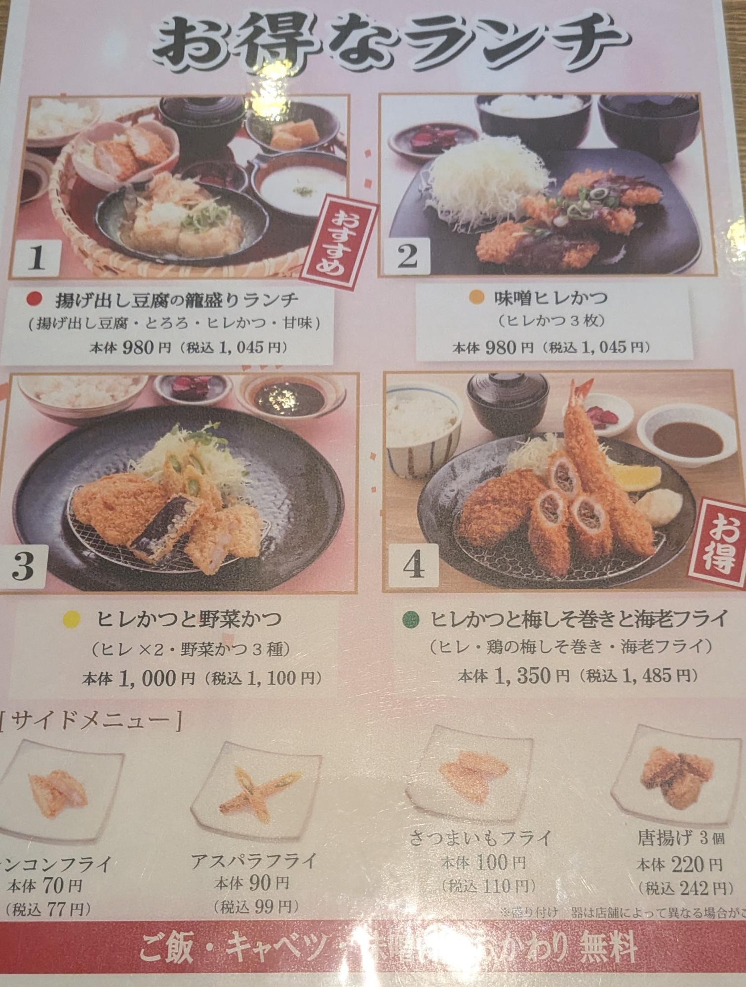 今回は味噌ヒレかつ(税込1,045円)を注文。