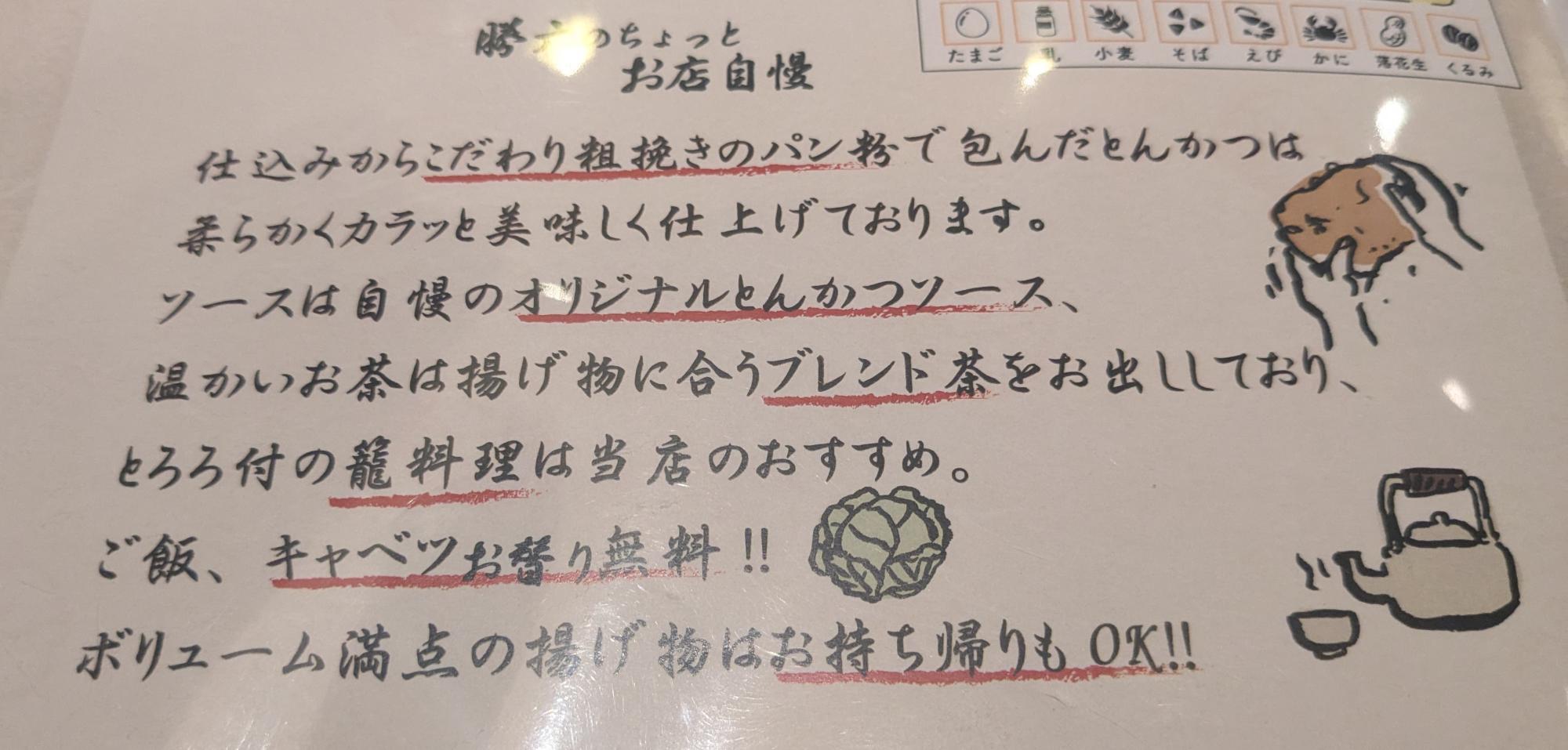 名古屋市千種区のアピタ千代田橋店に、ごはん&キャベツ&みそ汁がおかわり自由のとんかつ屋「とんかつ勝六 アピタ千代田橋店」があります。