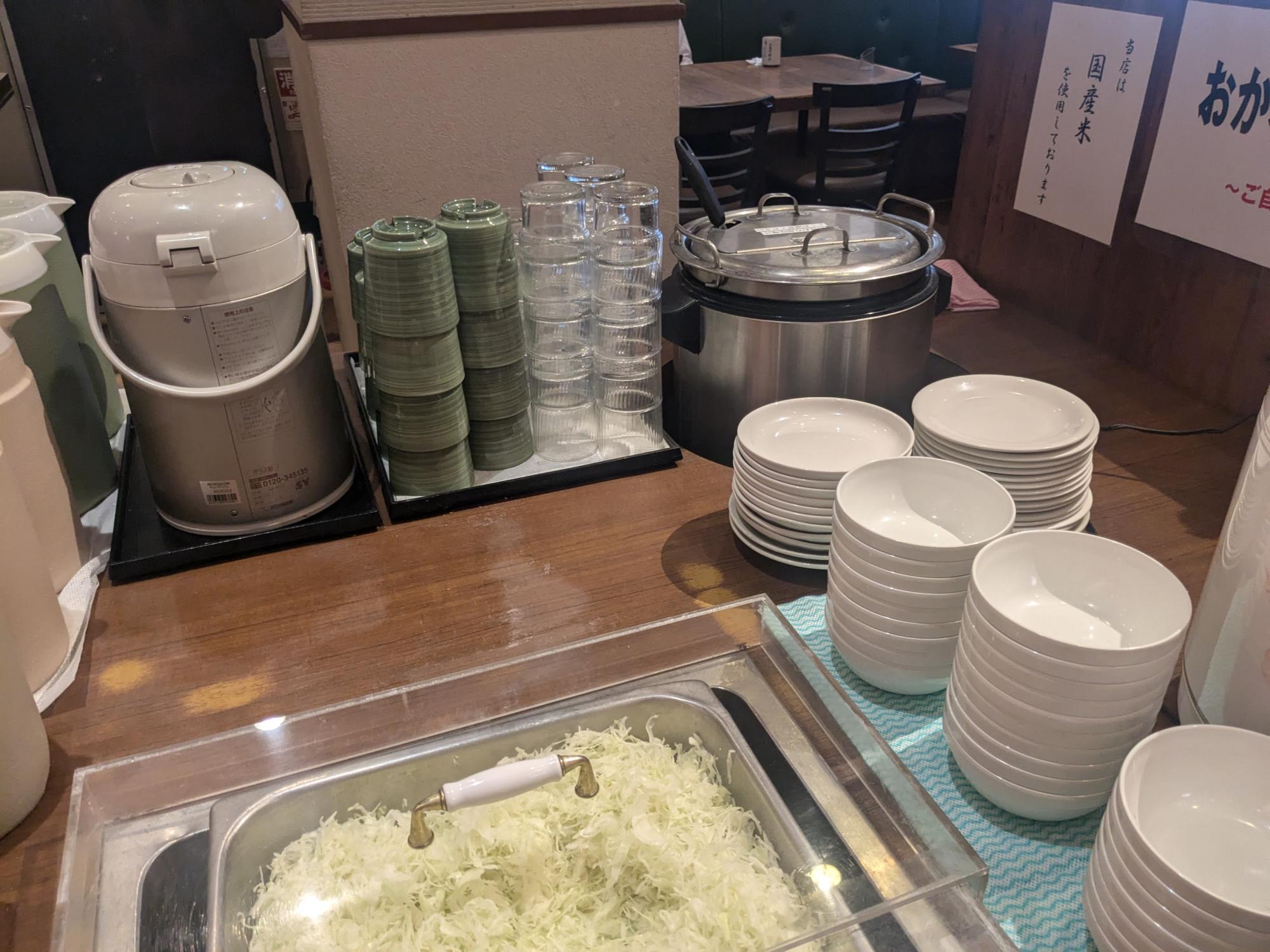 ごはん、キャベツ、みそ汁はおかわり自由。