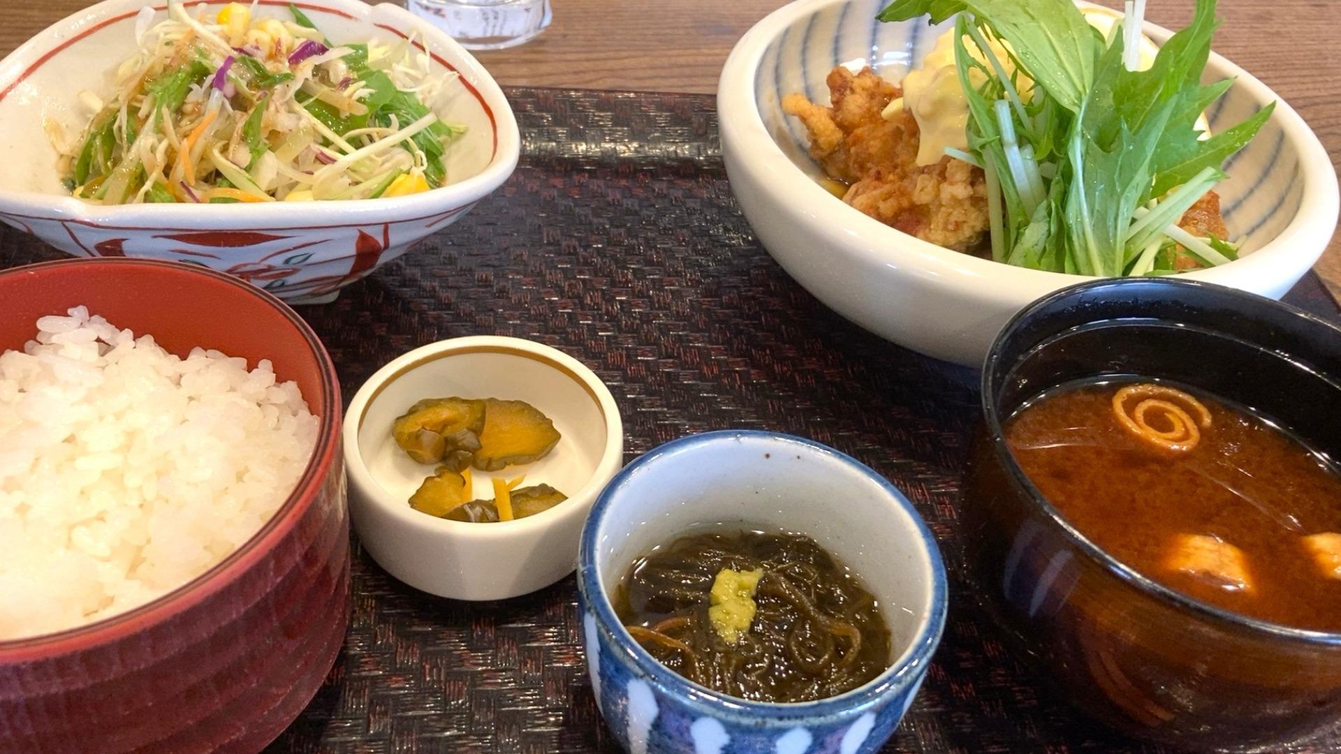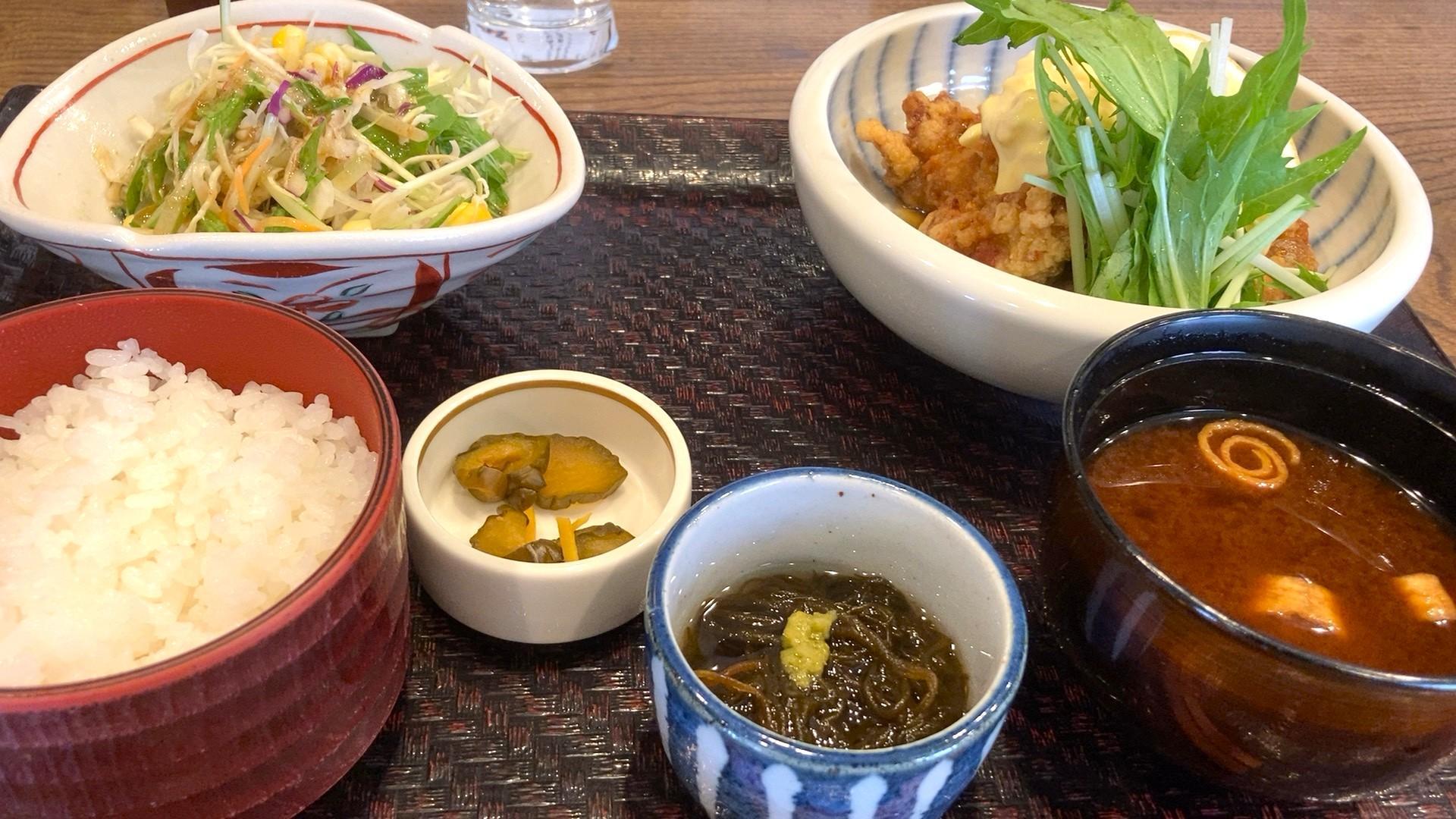 ランチタイム(土日祝限定)に提供されるのは「唐揚膳」と「チキン南蛮膳」の2種類の御膳メニュー。
