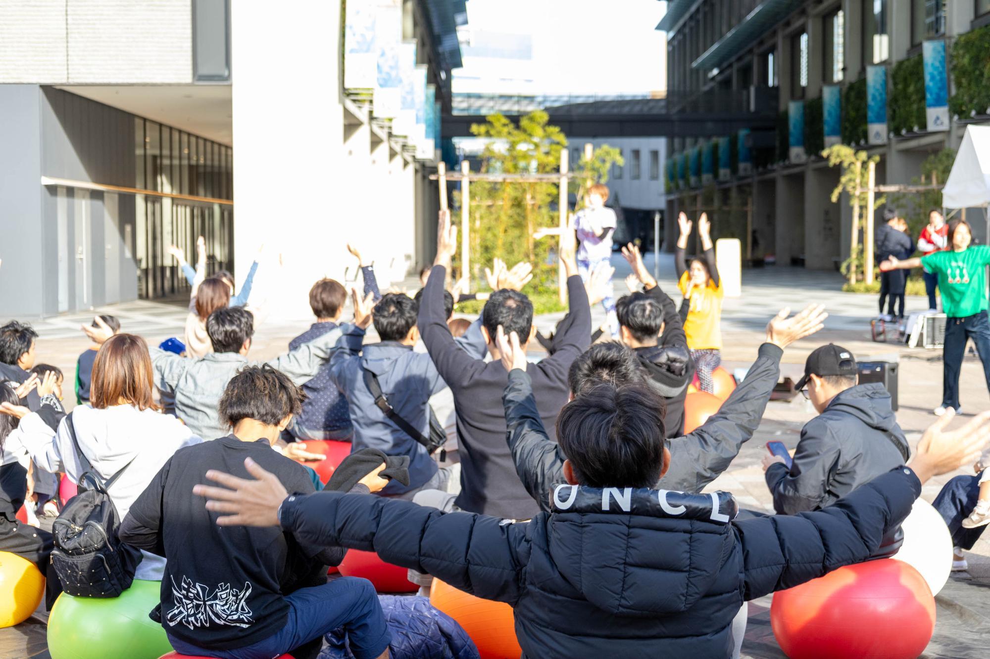 イベント会場に行ってみると、子どもと一緒に楽しめるレクリエーション・エクササイズをやっていて、子どもから大人まで楽しそうな声が響いていました。