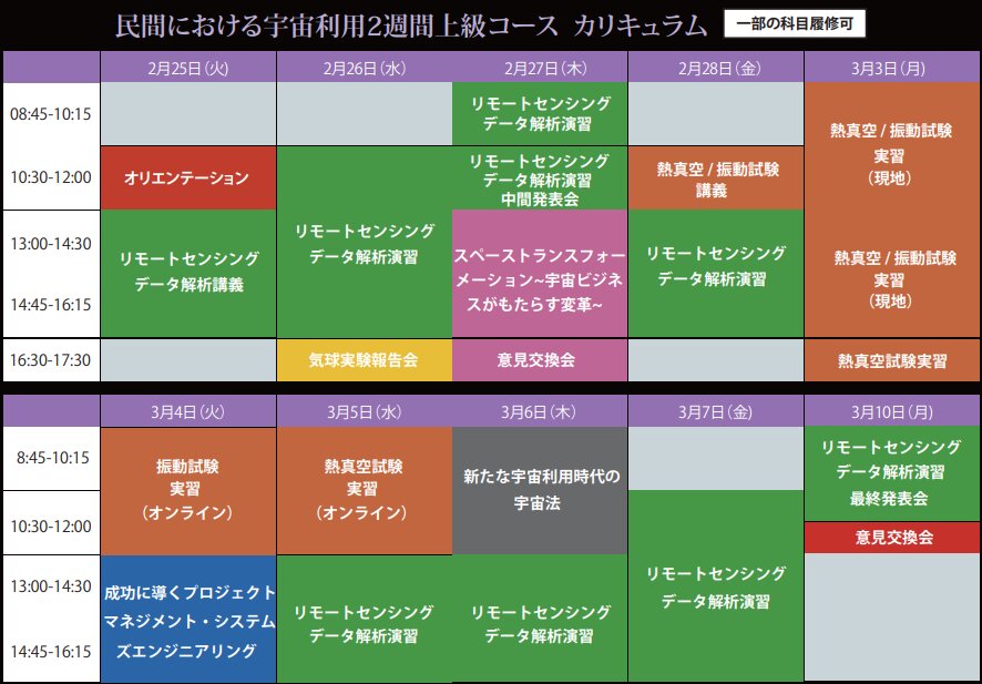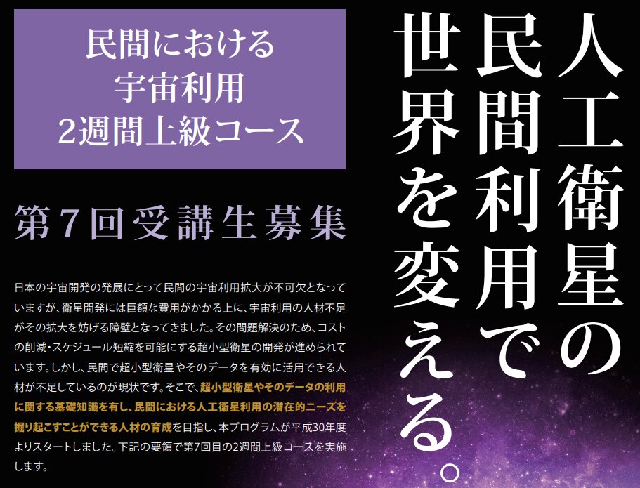 「民間における宇宙利用」第7回2週間上級コースの詳しい情報やお申込みについてはこちらからご覧いただけます。