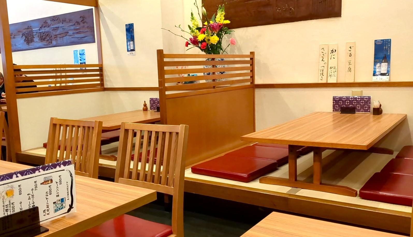 店内は落ち着いた和の雰囲気で、テーブル席やお座敷、個室まで幅広くあります。