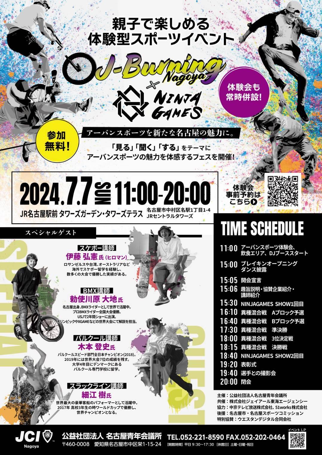 7月7日、アーバンスポーツイベント「J-Burning NAGOYA×NINJAGAMES」(主催:名古屋青年会議所)がJR名古屋駅前タワーズガーデン・タワーズテラスにて開催されました!