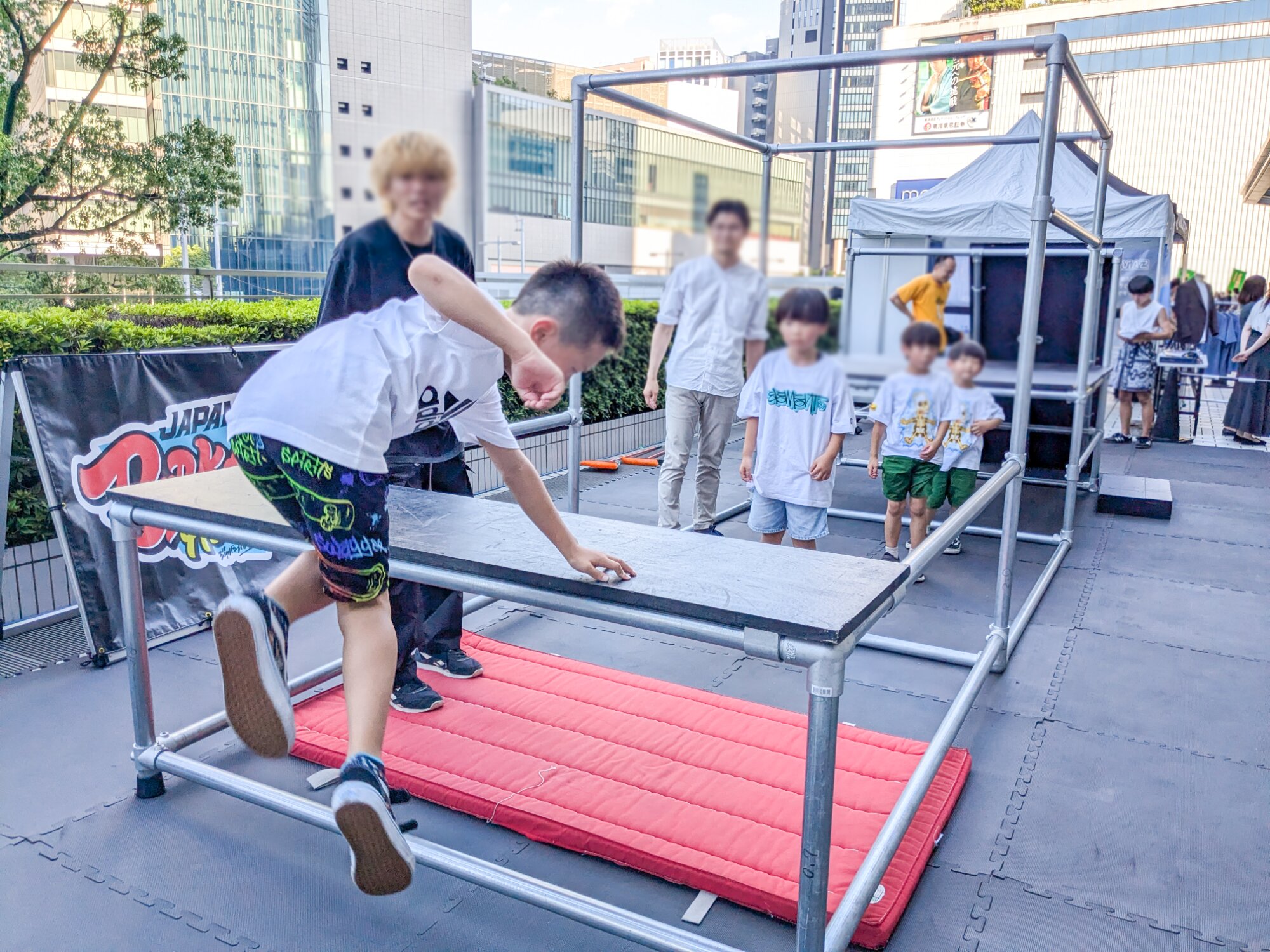 スペシャルゲストとして、プロのスケートボード選手、BMX選手、パルクール選手、スラックライン選手が来て、素晴らしい技を披露してくれました。