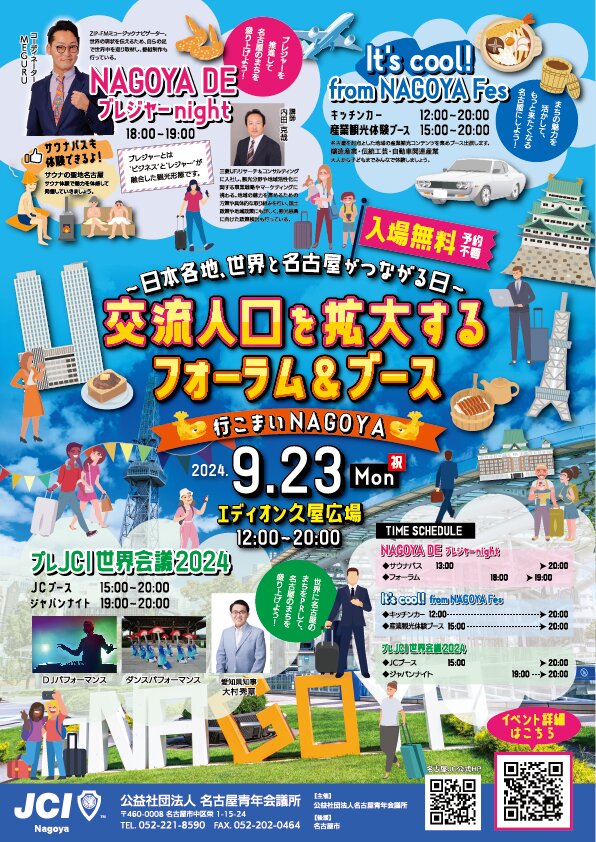 2024年9月23日(月)、エディオン久屋広場にて、交流人口を拡大するフォーラム&ブース(名古屋青年会議所主催)が開催されます。【予約不要・入場料無料】